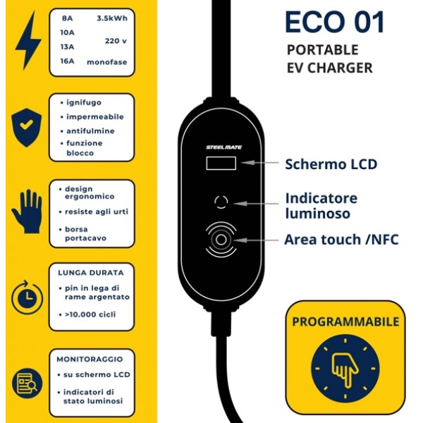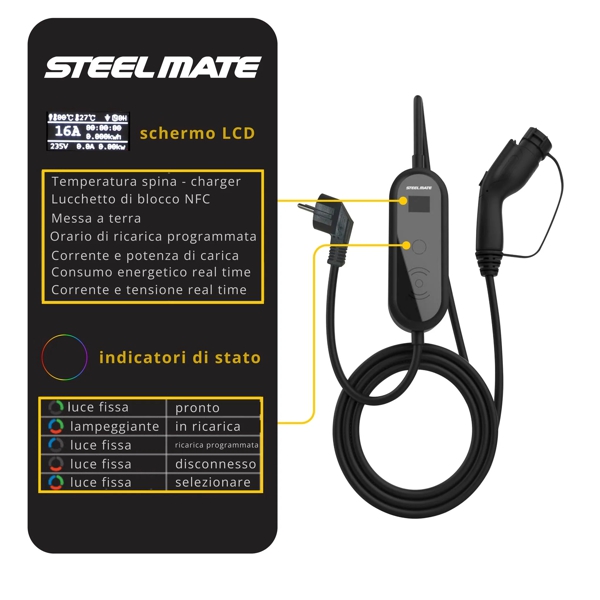 Tutti i cavi di ricarica Steelmate hanno una garanzia di 2 anni ma l'alta qualità dei materiali e la robustezza dei connettori impiegati offrono la garanzia di una lunga durata di vita del cavo di ricarica, in qualsiasi condizione di esercizio (oltre 10.000 cicli di inserimento)